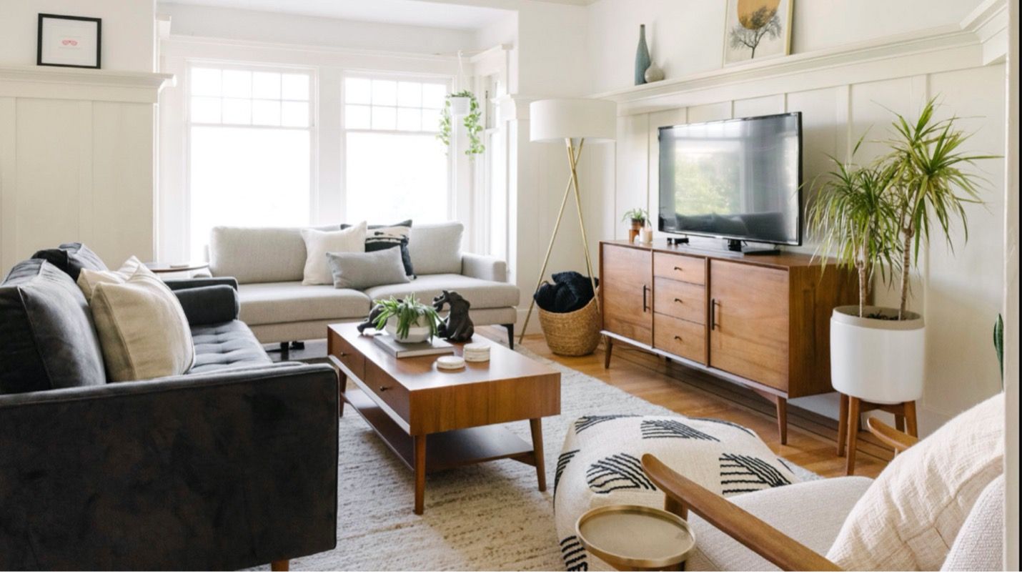 The perspective and depth of this virtual background will make it look as if you’re sitting in your own mid-century living room. Complete with gorgeous beams and neutral tones, this living room virtual background is sure to be the envy of colleagues with an eye for design.